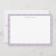 This personalized note card features a soft lavender gingham border with a clean white writing space and custom name at the top. The classic check pattern feels timeless yet fresh, making it perfect for everyday correspondence, thank you notes, or thoughtful handwritten messages. Simple, cheerful, and easy to use year-round, this design works beautifully for personal stationery or gifting. Customizable text adds a polished touch without feeling formal.