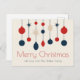 Cute retro Merry Christmas postcard with vintage 70 style ornaments in red, blue, and ivory above your family name. Beautiful nostalgic non photo holiday postcards.