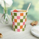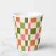 Cute Retro Orange Pink Green Chequerboard Pattern Paper Cups