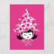 Cute Retro Pink Christmas Girl with Tree Hat Holiday Postcard