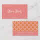 This minimalist pink and orange cream business card features a chic script calligraphy and a cute retro mid century modern pattern.