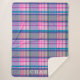 Personalised Cute Preppy Retro Plaid Pattern in Pink and Blue Sherpa Blanket