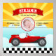 Cute Retro Red Race Car Baby Photo Birth Stats Poster