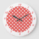 Cute Retro Red White Polka Dot Large Clock