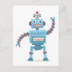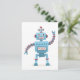 Cute postcard featuring a cute retro robot waving hello with one arm stretched up. White background. Fun design for kids and adults. For custom requests or help with customising please use the store contact link above.