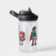 Stay hydrated in sci-fi style with this fun water bottle. It features cute illustrations of retro style robots in shades of red and blue and is ready to be personalised with a name in navy blue lettering. The graphics wrap around the bottle.