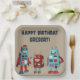 Cute Retro Robots Sci-Fi Boys Birthday Paper Plate
