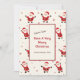 Cute little Santas parade around this fun flat Christmas card. They are happy characters all dressed up in their traditional red Santa Claus outfits and with flowing white beards, waving a merry hello to us in the falling winter snow. These are from fun retro cartoons. All the text is editable, including "Santa Says" and "Have a Very Merry Christmas". Be sure to change the example family name and year to your own.