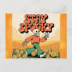 Wish everyone a happy Halloween with this cute, funny stay spooky postcard featuring a retro illustration of a skeleton in a daisy field!