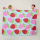 Cute Retro Strawberry Fruit Pattern Pink Red Blue Fleece Blanket
