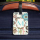 Cute retro turquoise blue floral pattern monogram luggage tag