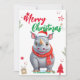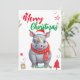 Cute rhino Christmas tree Holiday Personalise name Card