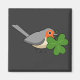 Cute Robin with Shamrock Clover Cartoon Magnet