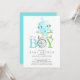 Adorable baby robot it's a boy baby shower invitation with a coordinating blue back.