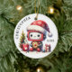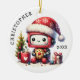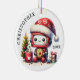Create a unique personalised ornament with a cute robot wearing a Santa hat, holding a cookie, and sitting near a Christmas tree, a cup of hot cocoa, and a gift box. It is a fun idea for a Christmas keepsake for kids and everyone who loves robots. The template makes it easy to add your name and type a year. If you need just a name, then delete the 20XX text.