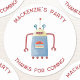 Cute retro vintage 1950s robot design. Change the top and lower name and text to personalise. Perfect for favour bags to thank your party guests.
