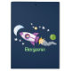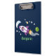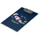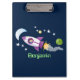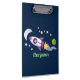 Cute rocket ship in space cartoon illustration clipboard