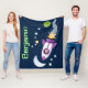Cute rocket ship in space cartoon illustration fleece blanket