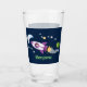 Cute rocket ship in space cartoon illustration glass