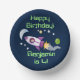 Cute rocket ship in space cartoon illustration paper plate