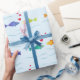 A pair of adorable, colourful fish swimming gracefully in the vast and sparkling ocean. The two fish are beautifully adorned with a vibrant palette of colours that mirror the brilliance of a coral reef. One fish might be a delightful shade of orange gold, while the other boasts a charming turquoise blue hue. Playful heart-shaped bubbles trail behind them, adding a touch of whimsy to the scene. This heartwarming illustration represents love and happiness in the ocean depths. Enjoy the bliss with this cute romantic wrapping paper. Great for Valentine's day gift.