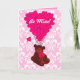 Easily personalise this cute funny teddy bear illustration, and romantic pink heart shaped balloons and traditional damask with your name text to make a unique card for your , lover, sweetheart, wife or girlfriend, this Valentine's day.