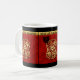 In a square are 2 roosters, one staying on a golden shape inside of which is the second rooster. Behind the scene there is a red background on which decorative and ornate letters form the words: "roos ter year". Design on classic white Mug. Matching products: greeting card, postcard, stickers, red envelopes and more...Perfect for Chinese New Year of the Rooster or birthday (people born in Rooster Year). ----- "The Rooster (simplified Chinese: 鸡; traditional Chinese: 雞/鷄) is one of the 12-year cycle of animals which appear in the Chinese zodiac related to the Chinese calendar. The Year of the Rooster is represented by the Earthly Branch character 酉. The name is also translated into English as Chicken. Rooster is the only bird included in the Chinese zodiac." ---- People born within these date ranges can be said to have been born in the "Year of the Rooster", while also bearing the following elemental sign: