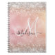 Cute rose gold faux silver glitter monogram notebook