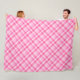 A large sized fleece blanket featuring a beautiful diagonal plaid pattern design in rosy pastel pink.