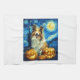 Cute Rough Collie Dog Halloween Jack O Lantern Pumpkin Face Starry Night Van Gogh Style