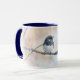 This nature mug features my original photograph of a Dark-eyed Junco bird sitting on a tree branch. I processed my photograph with a dreamy watercolor painterly style for an artsy flair. The handle and inside of the cup are ark blue to complement the artwork.
