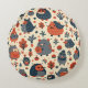 This product is a round pillow that can be placed in a child's room. It depicts cute hedgehogs and other cute animals that are suitable for a child's room. The background is ivory and the animals are blue and orange, creating a bright atmosphere in the room.