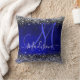 Cute royal blue silver faux glitter monogram cushion