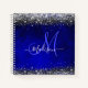 Cute royal blue silver faux glitter monogram notebook