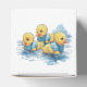 Watercolor yellow rubber duck in blue clothing in a water puddle. Great for the baby nursery!