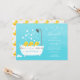 Adorable ducks in a bath tub with shower head set on a blue background for a triplets baby shower. Flip our sweet invitation over to view a coordinating duck back for an extra special touch. Visit our shop to view matching shower items. This invitation is also available for twins & triplets!