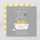 Adorable duck in a bath tub with shower head set on a dark grey background for a twins baby shower. Flip our sweet invitation over to view a coordinating duck back for an extra special touch. Visit our shop to view matching shower items. This invitation is also available for twins & triplets!