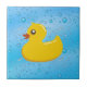 Fun and fresh rubber ducky in bright yellow, on a blue water background with clear bubbles. A clean and bubbly design that is great for any use... bubble bath, baby shower, car or dog wash business, childcare or summer pool party themes. Have a great time with the adorable cute squeaky toy for kids and children!