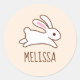 Cute Running Bunny Rabbit Custom Name Beige Classic Round Sticker
