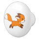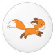 Cute little cartoon fox kit with large ears and bushy tail is running fast.