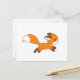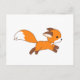 Cute little cartoon fox kit with large ears and bushy tail is running fast.