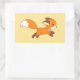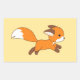 Cute little cartoon fox kit with large ears and bushy tail is running fast.