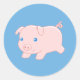 Cute Running Piglet Pig on Blue Classic Round Sticker