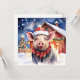 Cute Christmas pig in a Santa hat themed holiday card with a watercolor style hog standing in front of a barn on a snowy winter day. add your own edited message in the personalise area.