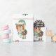 This cute Christmas wrapping paper features a classic white background with adorable whimsical forest animals with Santa hats on their heads. The pattern is completely with pine trees and little presents with red hearts. Perfect for kids Christmas wrapping paper or gift wrap for baby's 1st Christmas.