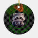 Cute Rustic racoon black grey plaid pine cone Ceramic Ornament