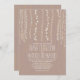 Cute rustic string of lights wedding invitations for your modern yet vintage wedding in the barn, ranch or lodge. Fully customisable invitation - you can change font style, colour, move text lines and write on the backside too. Background has a wooden texture and small twinkle lights embellishments just perfect rustic country invite for the wedding with string lights backdrop ceremony. The font is cute modern and casual!