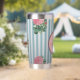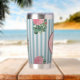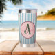 Cute Rustic Stripe Pink Roses Pattern Monogram Insulated Tumbler