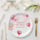 Cute Rustic Teddy Bear Heart Balloon Baby Shower Paper Plate