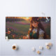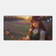 Cute Sad Anime Style Woman in Meadow at Sunset Desk Mat